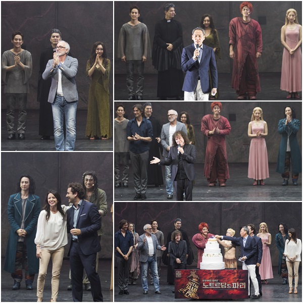 또한 ‘노트르담 드 파리’의 프로듀서인 니콜라스 타라, 조안무 나디아 부티그놀, 연출 로베르 마리엥, 안무 마르티노 뮐러, 작곡가 리카르도 코치안테 등 오리지널 크리에이터들과 한국어 가사 박창학, 음악감독 최임경이 무대에 올라 10주년을 축하했다.