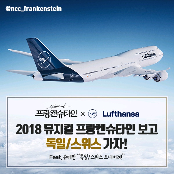 뮤지컬 ‘프랑켄슈타인’(제작 ㈜뉴컨텐츠컴퍼니) 측은 29일 “개막 이후 지금까지 열화와 같은 성원을 보내주신 관객들에게 감사의 마음을 전하고자 독일/스위스 왕복항공권을 증정하는 이벤트를 진행한다”고 밝혔다.
