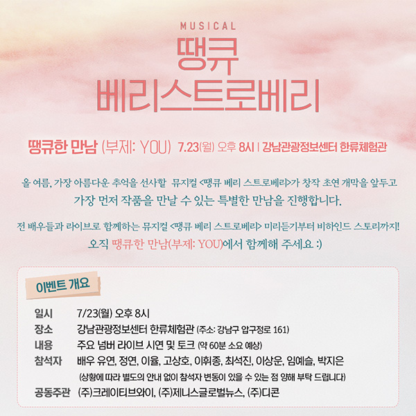 뮤지컬 ‘땡큐 베리 스트로베리’가 땡큐한 만남(부제: YOU)’라는 타이틀로 관객과 미리 만난다.