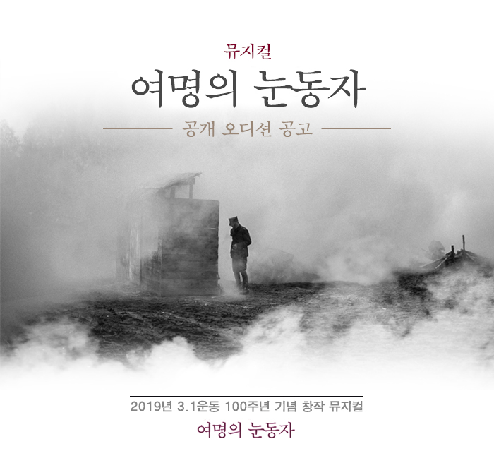 3.1운동 100주년 기념 공연으로 제작될 ‘여명의 눈동자’는 소설가 김성종의 동명의 소설을 원작으로 한 MBC 특별 드라마 ‘여명의 눈동자’를 극화한 창작 뮤지컬이다. 드라마 ‘여명의 눈동자’는 당시의 세밀한 소품 재현은 물론, 일제시대부터 해방 이후의 혼란기를 거쳐 한국 전쟁에 이르는 역사를 세밀하게 담아낸 바 있다.