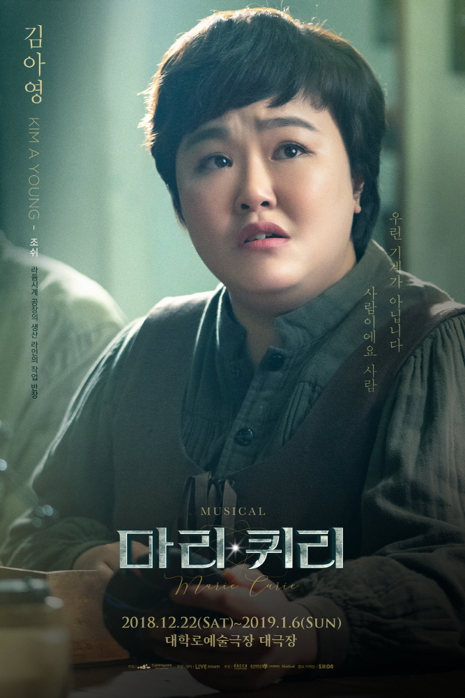 극 중 마리 퀴리 역의 배우 김소향, 임강희는 실제 실험에 사용되는 도구가 즐비한 책상을 배경으로 강인하면서도 복잡한 감정이 드러나는 눈빛으로 자신의 연구에 확신을 가졌지만 예상치 못한 위해성에 고뇌하는 마리 퀴리를 표현했다. 김소향의 모습이 담긴 포스터에는 “뭔가 더 있어. 멈출 수 없어. 알아낼거야. 좀 더 가보자”를, 임강희의 포스터에는 “여기에 있어. 새로운 원소. 아무도 모르는 작고 작은 세계”라는 극 중 마리 퀴리의 대사로 강인한 의지와 과학에 대한 열정을 그대로 담아냈다.