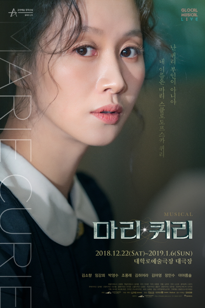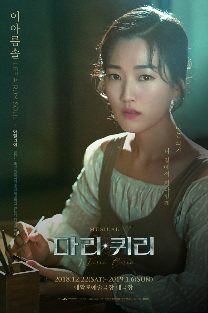 극 중 마리 퀴리 역의 배우 김소향, 임강희는 실제 실험에 사용되는 도구가 즐비한 책상을 배경으로 강인하면서도 복잡한 감정이 드러나는 눈빛으로 자신의 연구에 확신을 가졌지만 예상치 못한 위해성에 고뇌하는 마리 퀴리를 표현했다. 김소향의 모습이 담긴 포스터에는 “뭔가 더 있어. 멈출 수 없어. 알아낼거야. 좀 더 가보자”를, 임강희의 포스터에는 “여기에 있어. 새로운 원소. 아무도 모르는 작고 작은 세계”라는 극 중 마리 퀴리의 대사로 강인한 의지와 과학에 대한 열정을 그대로 담아냈다.