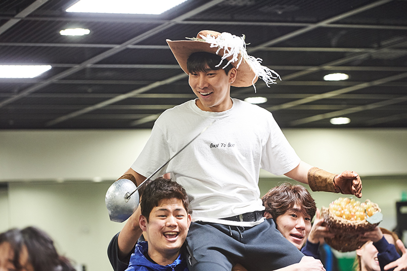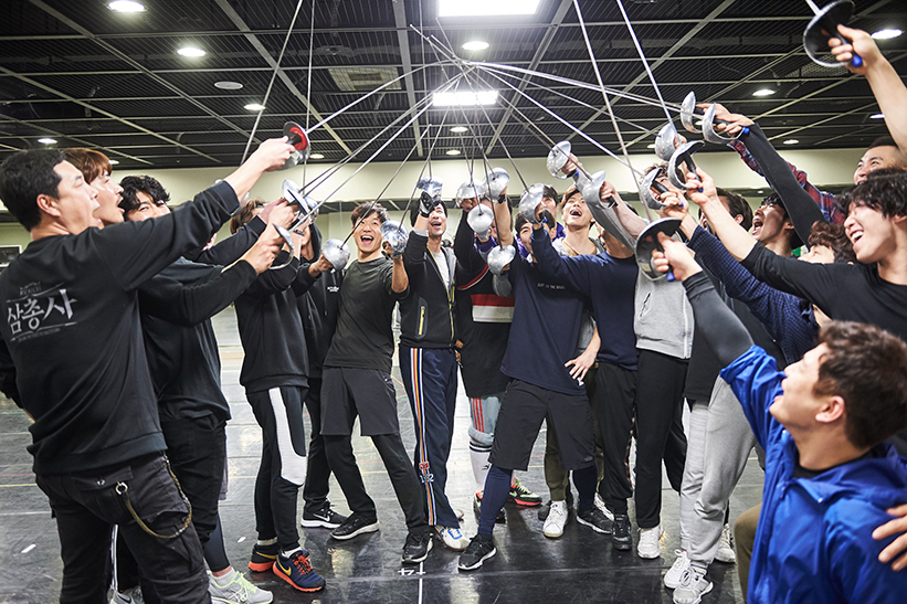 공개된 사진 속 배우들은 공연 중 소품으로 등장하는 칼을 한 곳에 모으고 웃음 띤 얼굴로 파이팅 포즈를 취하고 있어 무대 못지않은 폭발적인 에너지와 작품 특유의 유쾌함까지 느껴진다.