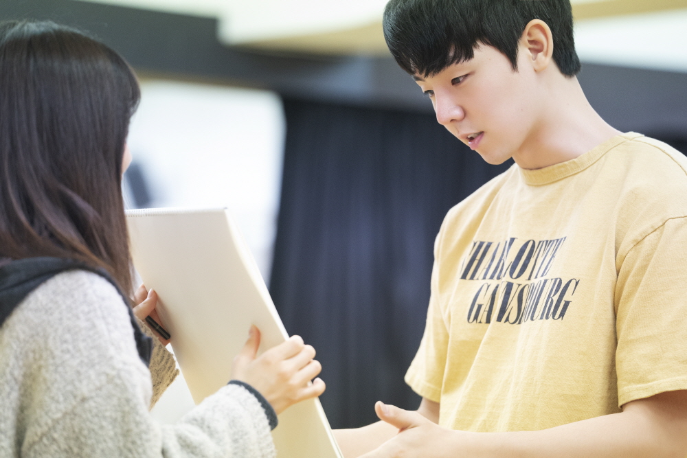 28일 제작사 측이 공개한 연습 현장 사진에는창작 초연 작품을 함께 만들어가게 된 배우들과 스태프의 긴장감 넘치는 모습은 물론이고 시종일관 웃음을 잃지 않는 유쾌한 모습이 담겨 있어 눈길을 끌었다.