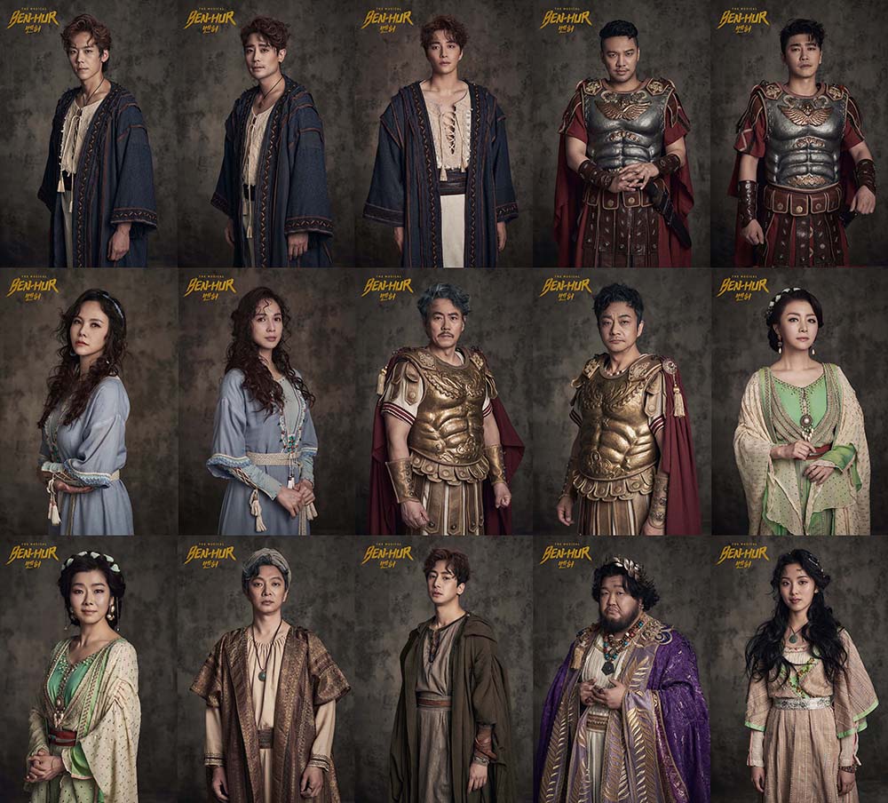 공개된 사진에는 ‘벤허’역을 맡은 배우 카이, 한지상, 민우혁과 ‘메셀라’ 역의 문종원, 박민성, ‘에스더’ 역의 김지우, 린아를 비롯해 이병준, 이정열, 서지영, 임선애, 홍경수, 선한국, 이정수, 문은수 등 주요 배역들의 모습이 담겨있다.