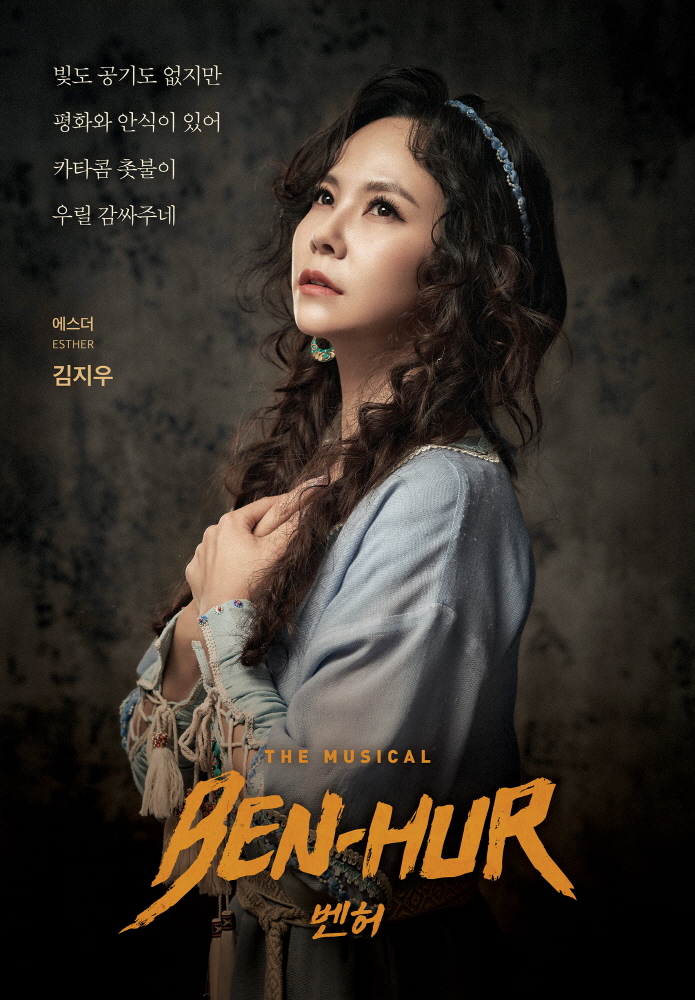 김지우는 두 손을 가슴에 얹고 하늘을 바라보는 모습으로 벤허의 안식처이자 그를 이해해주는 단 한 사람인 에스더를 표현했다. 이어 캐릭터 포스터에 함께 기재된 “빛도 공기도 없지만 평화와 안식이 있어 카타콤 촛불이 우릴 감싸주네” 라는 글귀로 험난한 삶 속에서도 희망을 잃지 않는 에스더를 김지우만의 매력으로 재해석할 전망이다.