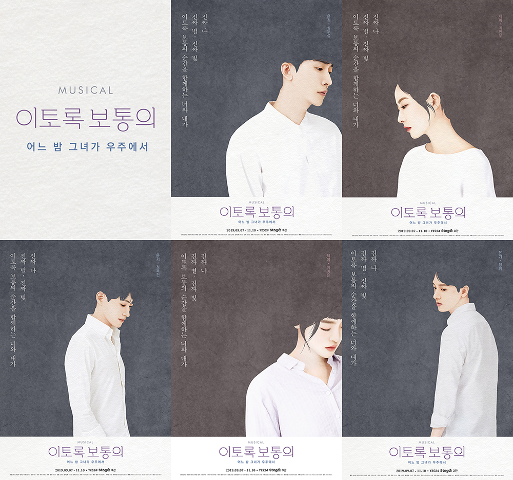 21일 공개된 5인 5색 캐릭터 포스터에는 먹먹하고 아련한 감성을 자극하는 배우들의 모습이 담겨 있다. 꿈꿔 오던 우주 비행을 눈앞에 둔 제이 역의 최연우, 이예은과 사랑하는 제이와 보통의 하루를 보내고 싶은 은기 역의 성두섭, 정욱진, 정휘의 모습은 극 중 캐릭터로 완벽 변신한 듯 100% 싱크로율을 자랑한다. 더불어 까만 밤하늘을 배경으로 적혀진 “이토록 보통의 순간을 함께하는 너와 내가 진짜 별, 진짜 빛, 진짜 나”라는 카피는 배우들의 모습에 애틋하고 아련한 감성을 더하며 예비 관객들의 궁금증과 기대감을 높이고 있다.