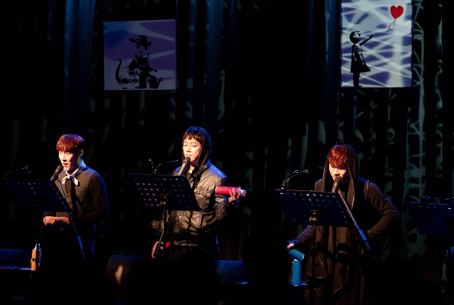 이어서 8시에 진행된 두 번째 쇼케이스작 ‘뱅크시’는 전 세계적인 이슈를 몰고 다니는 영국의 그라피티 아티스트 ‘뱅크시’를 소재로 한 작품이다. 뱅크시 특유의 사회적 현실 비판과 허영심 가득한 미술계를 비판하는 메시지를 바탕으로 이야기를 구성하고, 그를 돕거나 이용하는 주변 인물들의 에피소드를 풀어냈다. 뱅크시 역은 테이, 클라인 역은 김주호, 타일러 역은 조환지가 맡았고 작가 역은 김영한, 젊은 갑부 역은 가람, 니콜 역은 이동수가 연기했다. 거리 곳곳에 작품으로 사회 풍자 메시지를 전하는 그라피티 작가와 그를 둘러싼 사람들 간의 관계, 이를 표현하는 강렬하고 빠른 템포의 리드미컬한 음악, 그의 독특한 작품 세계가 돋보이는 연출이 어우러졌다. “흥겨운 음악 덕분에 공연이 끝난 뒤에도 여운이 가시지 않는다”, “그라피티에 대해서 작가들이 벽에 그림을 그릴 때 어떤 생각을 하고 그리는지 알 수 있었다”, “본 공연에서는 그라피티가 무대 위에서 어떻게 표현될지 기대됐다” 등의 관람객 호평이 이어졌다.