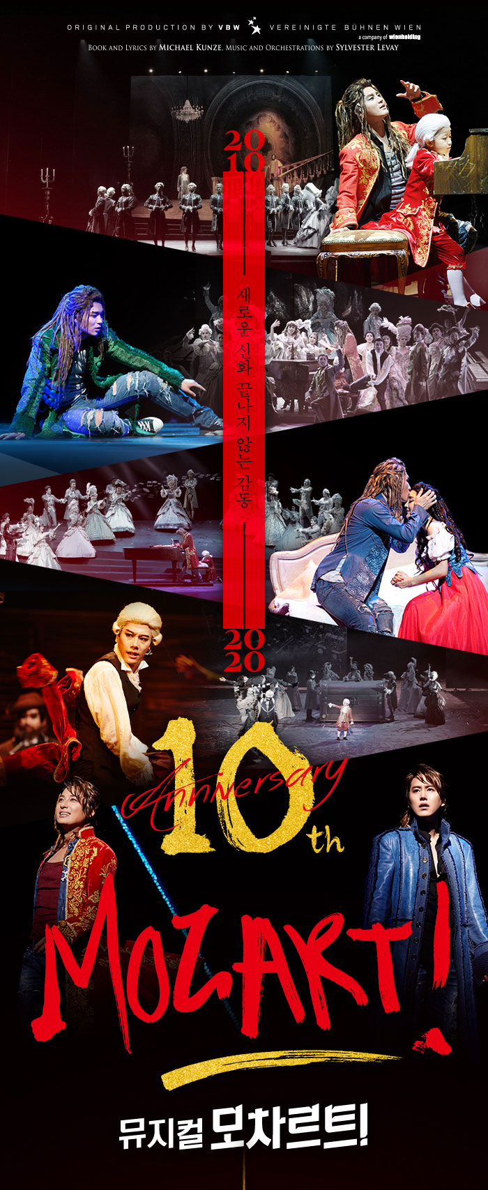 오는 2020년 세종문화회관 대극장에서 선보이는 ‘모차르트!’ 10주년 기념공연은 공연문화의 허브라 불리는 세종문화회관에서 공연 된 단일 라이선스 공연으로써는 최다 회차(219회)를 기록했다는 점에서 더욱 상징적이고 유의미한 공연이라 볼 수 있다. ‘모차르트!’가 매 시즌 높아지는 완성도와 새로운 차원의 무대미술, 꿈의 캐스팅으로 화제의 중심에 있었던 만큼 이번 10주년 기념공연에는 관객들이 꿈꿔왔던 최고의 캐스팅과 EMK 10년 노하우를 총망라한 역대급 무대로 새로운 10년을 위한 최고의 작품을 선보일 것으로 기대된다.