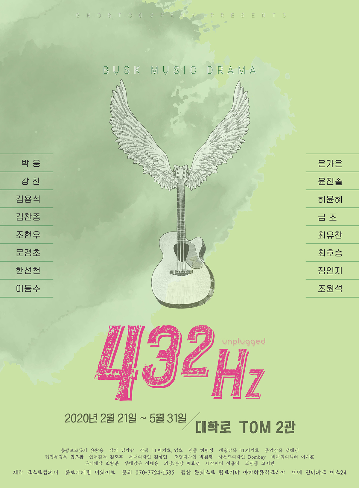 삭막한 세상 속에서 서로의 상처를 치유하고, 진정한 삶의 가치를 찾아가는 버스커들의 이야기를 담은 버스크 음악극 ‘432Hz’ (프로듀서 유환웅, 연출 허연정, 작가 김가람)가 캐스팅을 공개했다.