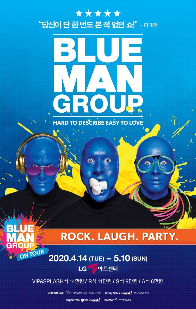 3,500만 명의 관객을 동원하며 전세계를 강타한 인기 폭발의 히트 쇼 ‘블루맨 그룹’이 2020년 월드투어의 일환으로 4월 14일부터 5월 10일까지 LG아트센터에서 공연된다. 2008년 세종문화회관 대극장에서 ‘블루맨 그룹-메가스타 월드 투어’를 공연한 이후, 12년만에 새로운 버전으로 한국에 돌아오는 ‘블루맨 그룹’ 월드 투어는 ‘블루맨’ 특유의 가장 사랑받는 클래식 프로그램과 더불어 새로운 음악, 신선한 스토리, 커스텀 악기(Custom made, 고객의 주문에 맞춰 제조한 악기), 그리고 감각을 자극하는 그래픽이 더해져 한층 화려해진 공연을 선보인다. ‘블루맨 그룹’ 월드투어는 록(Rock) 콘서트를 방불케 하는 강한 비트의 음악과 퍼포먼스, 슬랩스틱이 가미된 코미디 등이 어우러져 한바탕 관객과 함께 즐기는 파티가 벌어진다. 특히, 컬러풀한 색채감을 살린 무대 예술과 놀라운 그래픽 기술은 관객으로 하여금 블루맨의 세계에 더욱 깊이 빠져들게 만든다.