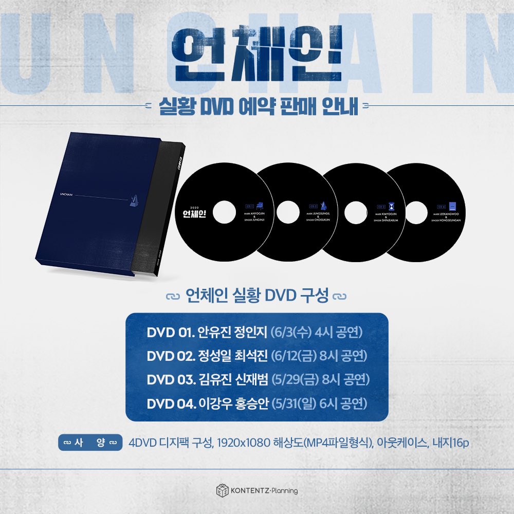 한편, ‘언체인’은 삼연까지 사랑해주신 관객 분들의 성원에 보답하는 의미로 이번 공연 실황을 DVD로 발매한다. 출시 예정일은 7월 중순이며, 총 4장의 DVD로 구성된 이번 실황 DVD의 정가는 77,000원이다. 7월 3일까지 사전 예약 시 할인가인 7만원에 구매할 수 있다.