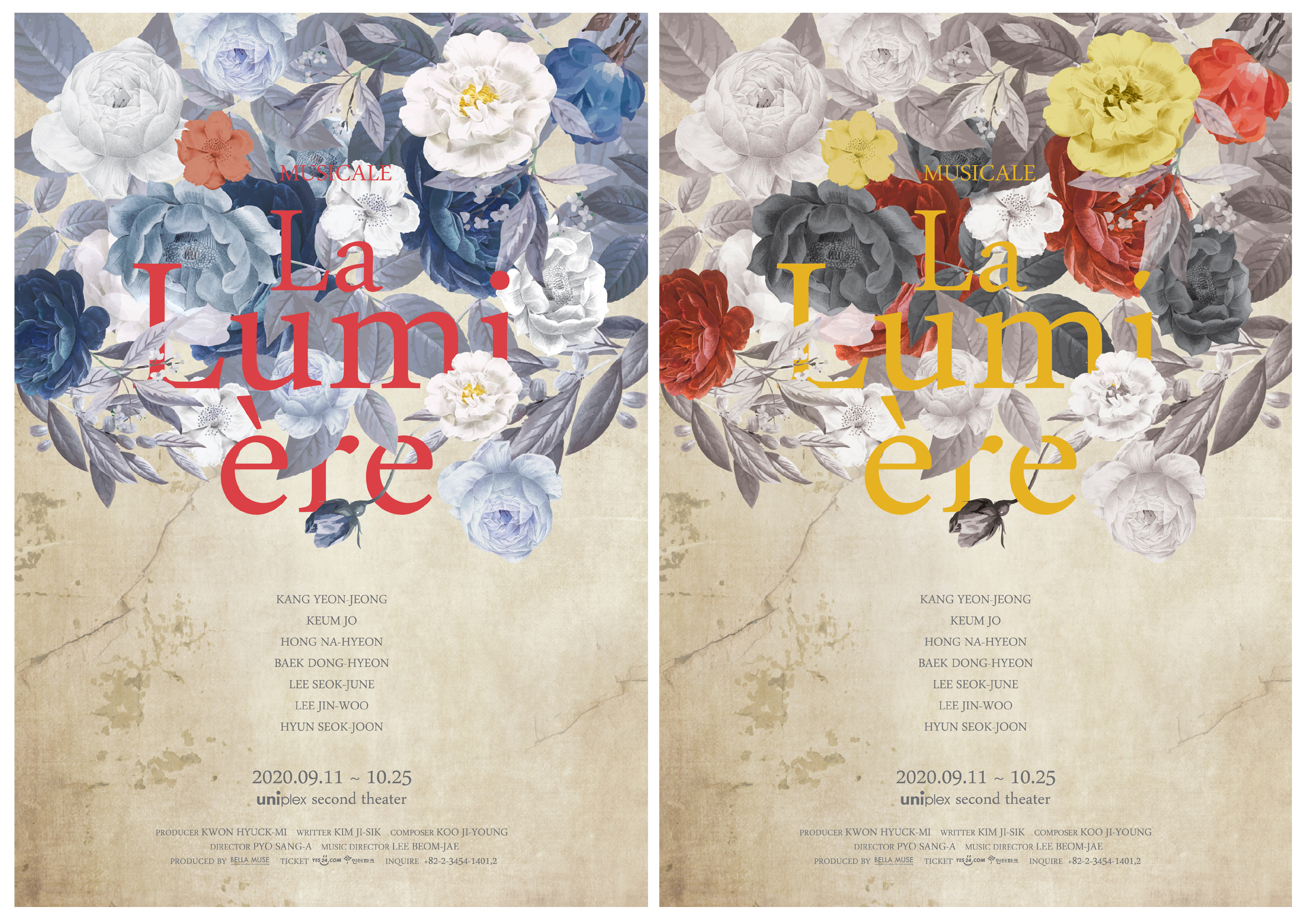 한편 전쟁이라는 참혹한 현실에서도 서로를 감싸주던 빛과, 그 안에서 피어난 순수함을 꽃으로 형상화해, 파괴된 현실과 아름다운 꽃을 대조시키며 전쟁의 불안함과 그럼에도 불구하고 사라지지 않는 희망을 서정적으로 표현한 티저 포스터 공개로 단번에 예비 관객들의 눈길을 사로잡은 ‘라 루미에르 La Lumière’는 ‘더 모먼트’, ‘쿠로이 저택엔 누가 살고 있을까’의 떠오르는 신진 연출 표상아, 뮤지컬계의 주목받는 피아니스트 겸 음악 감독 이범재가 합류했으며 뮤'붉은 정원', 'heshe태그:그와 그녀의 태그', '조제, 호랑이 그리고 물고기들', ‘왕복서간往復書簡:십오 년 뒤의 보충수업’의 문화 컨텐츠 기획, 제작사 벨라뮤즈㈜가 제작해 우수한 신진 창작진과 실력파 크리에이티브 팀, 라이징 스타들의 열정과 조화를 보여줄 예정이다.