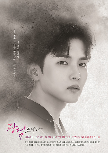또한 ‘광염소나타’ 8인의 캐릭터 포스터에는 주요 대사와 표정만으로 주인공 각각의 캐릭터를 묘사하고 있다. “내 악보 속에서 그들은 모두 살아 숨쉬고 있어요”라고 말하는 J역의 김지철, 려욱(슈퍼주니어), 후이(펜타곤)는 슬프고도 애처로운 예술가의 눈빛으로 자신의 비운을 토로하고 있다.