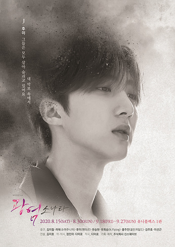 또한 ‘광염소나타’ 8인의 캐릭터 포스터에는 주요 대사와 표정만으로 주인공 각각의 캐릭터를 묘사하고 있다. “내 악보 속에서 그들은 모두 살아 숨쉬고 있어요”라고 말하는 J역의 김지철, 려욱(슈퍼주니어), 후이(펜타곤)는 슬프고도 애처로운 예술가의 눈빛으로 자신의 비운을 토로하고 있다.
