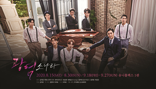 광염소나타 스페셜 포스터에는 이번 2020 무대를 장식할 8인의 주역들이 모두 함께 했다. 극중 가장 중요한 소재인 그랜드 피아노를 중심으로 각각의 매력을 어필하며 포즈를 취한 광염소나타 주역들은 이번 작품에 임하는 진지함과 그들만의 카리스마가 고스란히 묻어있다.