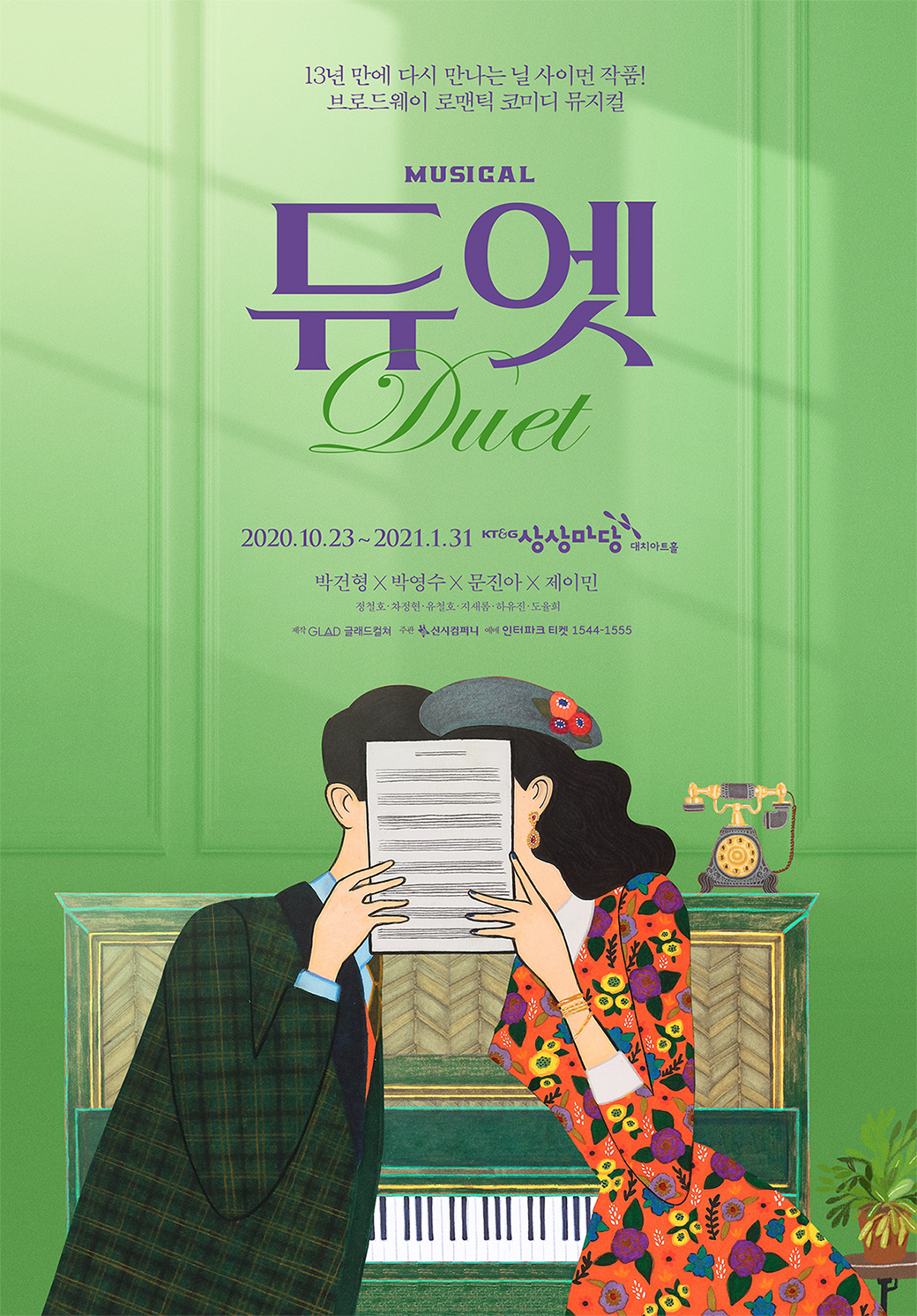 로맨틱 코미디 뮤지컬의 원조 ‘듀엣’이 오는 10월 23일부터 2021년 1월 31일까지 KT&G 상상마당 대치아트홀에서 공연된다.