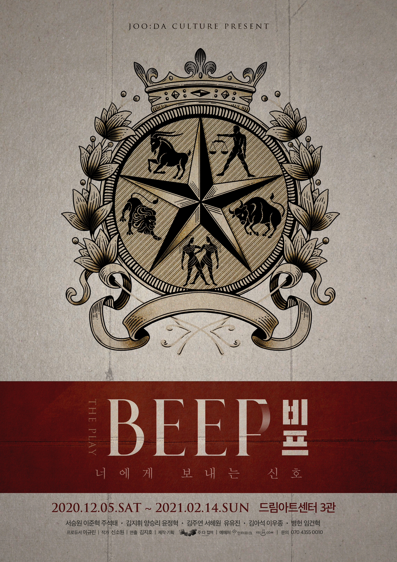 한편, ‘BEEP:비프’는 오는 2020년 12월 5일부터 2021년 2월 14일까지 대학로 드림아트센터 3관에서 초연된다. 티켓오픈은 인터파크 티켓을 통해 11월 3일 1차 단독오픈으로 진행될 예정이며 자세한 내용은 (주)주다컬쳐 공식 SNS 계정을 통해 확인 할 수 있다.