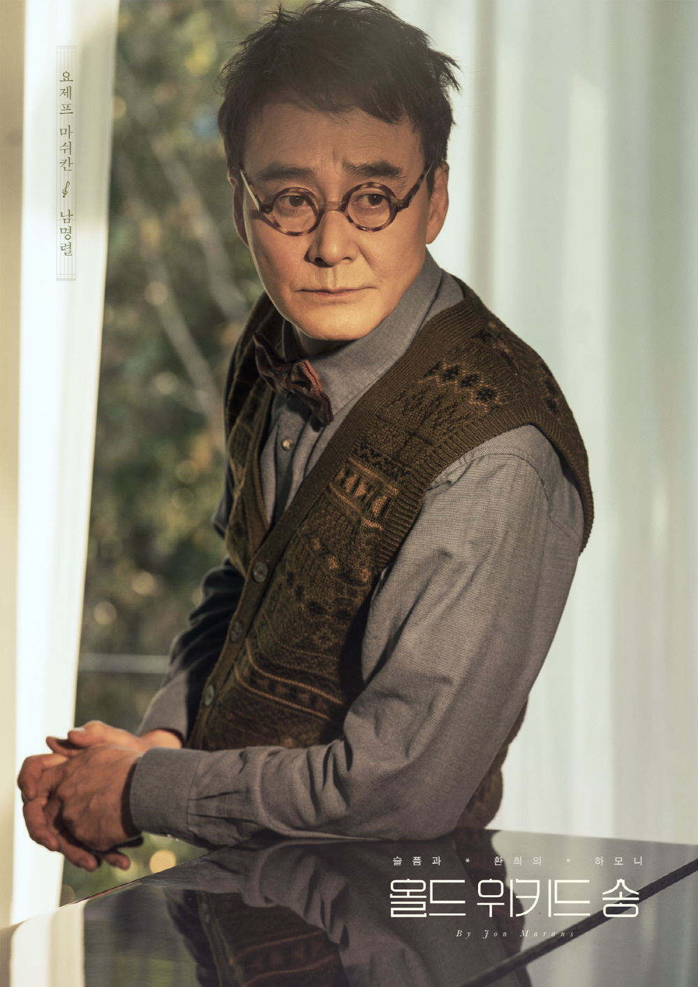 동그란 안경과 니트 조끼, 보타이로 친근한 이미지를 강조한 남경읍과 남명렬은 어딘가 쓸쓸한 눈빛으로 피아노 너 머를 응시, 평소 유쾌하고 익살스러운 성격이지만 그 이면에 가슴 아픈 과거를 감추고 살아가는 ‘마쉬칸’ 캐릭터에 입체감을 더했다.