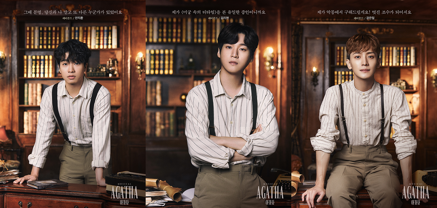 한편 ‘아가사’가 작품을 완성하도록 돕는 의문의 인물 ‘로이’ 역의 김재범ㆍ김경수ㆍ고상호는 화려하고 볼륨감 있는 소파에서 여유로운 포즈를 취한 채로 도무지 속을 알 수 없는 표정을 짓고 있어 그 역할에 대한 궁금증과 호기심을 자아낸다. 블랙 턱시도에 와인색 행커치프로 포인트를 준 세 사람은 친절한 듯 보이면서도 어딘가 모르게 차갑고 냉철한 분위기를 풍겨 더욱 미스터리한 느낌을 준다.