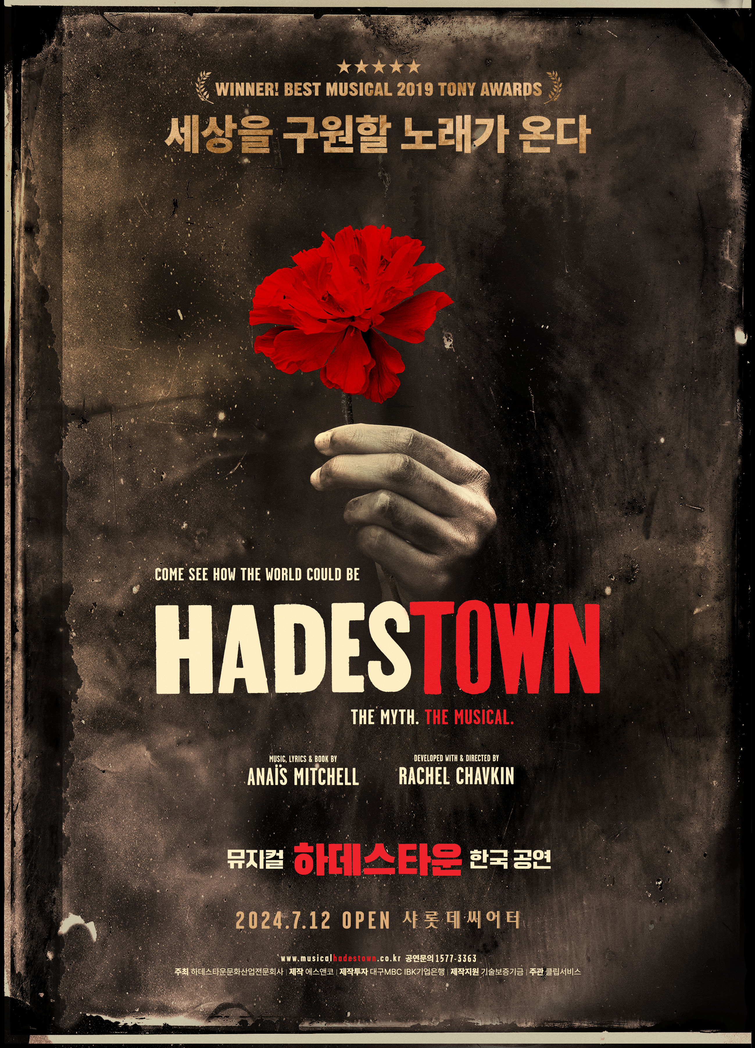 2024년 2월 웨스트엔드에서도 개막, 영국 공연예술계 최고 상으로 불리는 로런스 올리비에상 Best Musical Revival 부문에 노미네이트 된 '하데스타운'이 마침내 2024년 7월, 한층 견고해진 프로덕션으로 다시 한번 한국 관객들과 마주한다. 흔들리는 조명과 회전무대, 아메리칸 포크와 블루스, 재즈가 뒤섞인 37곡의 라이브 넘버까지, 뮤지컬 '하데스타운' 한국 공연을 기다려 온 관객들이 사랑한 무대가 초연의 감동 그대로 샤롯데씨어터에서 펼쳐친다.