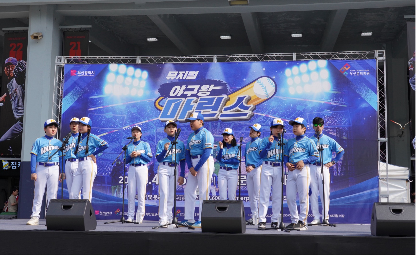 뮤지컬 '야구왕, 마린스!'가 지난 25일, 롯데 자이언츠의 홈구장인 사직야구장에서 이벤트를 성황리에 개최하며 6월 4일에 개막하는 두 번째 시즌에 대한 기대감을 높였다.
